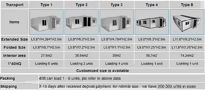 Expandable house is easy to disassemble, superior performance, stable and firm, tight seal, heat insulation, waterproof structure, lake corrosion resistance, beautiful fire prevention,various colors, waterproof and fireproof, anti-corrosion and shockproof and other good performances, the overall weight is light, the service life can reach more than 10 years.